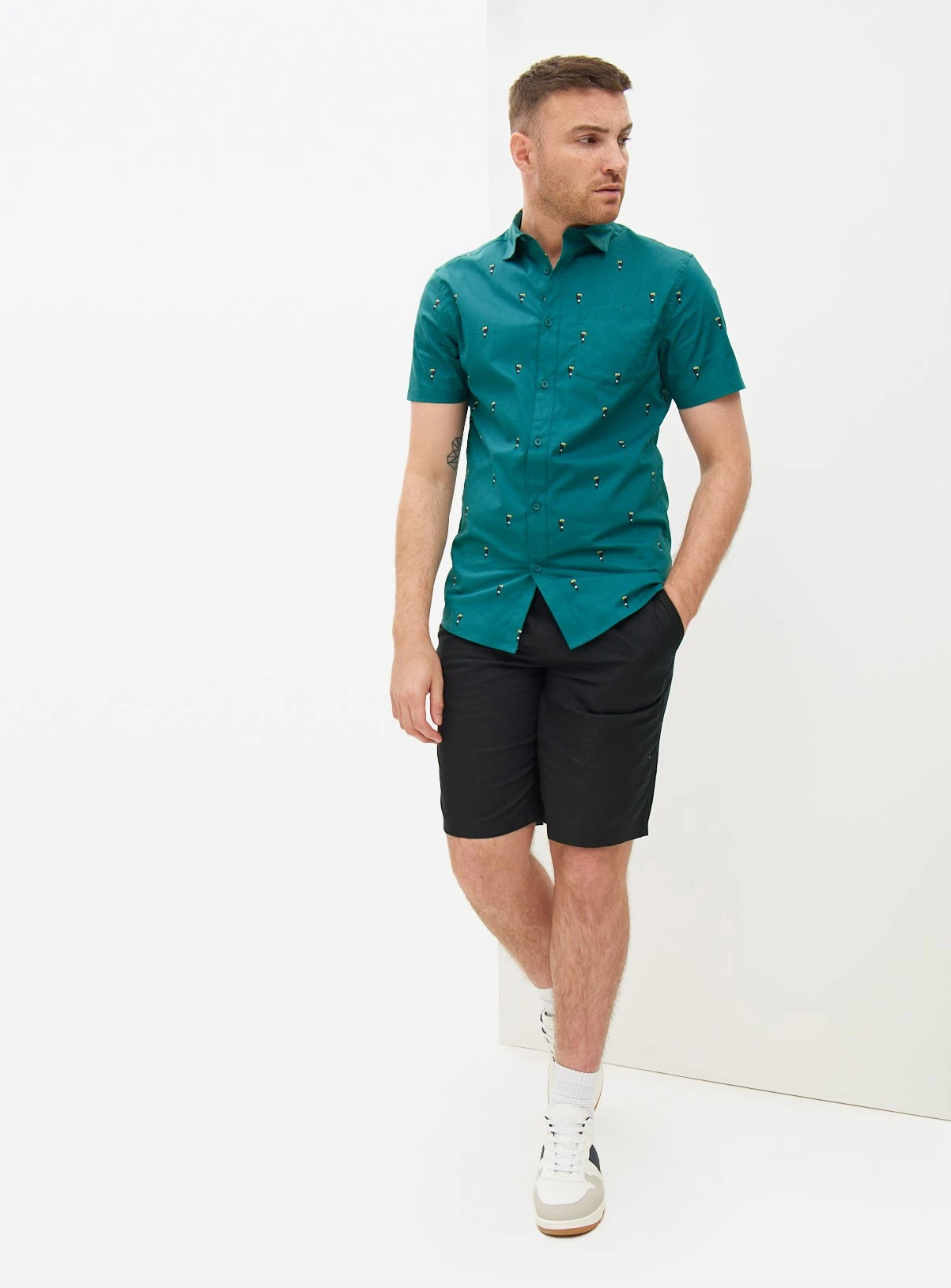 Give your casual wardrobe a summer update with our teal short sleeve shirt. Designed with a toucan print throughout for a fun touch, this shirt has been cut to a slim fit and features value fastening and a front pocket. Crafted from a lightweight cotton, it’s perfect for warmer days.